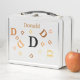 Name and your choice of single letter (or number). Name will show in orange at top, with the chosen letter appearing as a large central letter in black, surrounded by two sizes of smaller letters (in shades of yellow and orange) that are jumbled around the central letter. Same design on both sides. ***Part of coordinated set - BKM2q4.