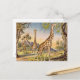 Cute vintage artwork showing a giraffe stretching up to eat some leaves off a tree