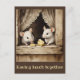 A couple of white rodents having a feast over a rustic window with lace curtains, where the main menu is a chunk of cheese. The atmosphere feels warm and serene and it look like they're having a good time.