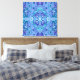 Print on canvas featuring whimsical arabesque pattern, stylized lupine flowers and leaves, bohemian / ethnic / hippie / vintage style. This design was elaborated from hand drawn acrylic painting. Color palette: blue, azure, teal, ultramarine, cobalt, lavender.