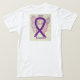 Lupus awareness uses a purple ribbon for its cause awareness. The shirt art features a purple awareness ribbon angel painting. The awareness angel t-shirt message notes "Lupus Awareness". There is a large image on the back of the shirt and a smaller picture on the front of the shirt. The purple awareness angel ribbon art apparel can be customized with personalized messages to make great cause event clothing for fundraiser shirts, group team walk shirts, awareness t-shirt gifts, or other special cause events occasions for merchandise to help increase this cause's awareness in public for society's help in creating help & cause change.