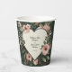 Sip in style with paper cups that feature a botanical print of blush pink flora against a dark green field, a chic choice for toasting to your special occasion.