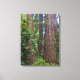 Wrapped canvas print that features the photographic image of an evergreen forest with tall Douglas fir trees and lush, green plants. Customize your canvas size as desired along with frame options.