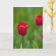 This greeting card features a close-up photo of a single deep red, cup-shaped flower set slightly off-center toward the lower left, its velvety petals opening like a gentle embrace ❤️. Fine folds and faint veins show across the petals, with brighter red along some edges and a darker, richer tone toward the center. Behind it, a soft wash of green suggests a garden setting, blurred into round points of light that feel like sun filtering through leaves. The contrast between the crisp flower and the hazy background creates an intimate, romantic focus, as if the bloom is leaning in to be noticed. A short Mother’s Day message sits near the top in a light color that stands out against the greens, with a smaller line beneath it in a matching tone. A tiny 🌼 accent appears near the text, echoing the garden theme without distracting from the main flower. The background fades from darker green at the edges to a lighter green glow near the upper right.