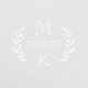 Wedding embosser with your initials separated by your wedding date and framed by leafy twigs curved on each side of the date. Monogram wedding embosser with a lush greenery wreath framing your initials and wedding date