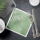 A trendy color palette in shades from soft tea and moss to dark hunter green; sparkling geometric frames and elegant design layouts, provide the basis for this exciting wedding suite. Whether you're planning a destination wedding or staying close to home, this delicate palm leaf design set makes an eye-catching choice. The coordinating paper napkin shown here provides a template to easily add your initials, names and wedding date. Search ID956 to see other pieces and color choices for this set.