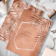 A trendy color palette in shades of terra cotta, copper and rust; sparkling geometric frames and elegant design layouts, provide the basis for this exciting wedding suite. Whether you're planning a destination wedding or staying close to home, this delicate palm leaf design set makes an eye-catching choice. The wedding 'Invitation' card shown here also features a seamless palm leaf pattern on the reverse. A template is provided to add all your event details. Search ID956 to see other pieces and color choices for this set.