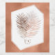 A trendy color palette in shades of terra cotta, copper and rust; sparkling geometric frames and elegant design layouts, provide the basis for this exciting wedding suite. Whether you're planning a destination wedding or staying close to home, this delicate palm leaf design set makes an eye-catching choice. The striking wine label shown here provides a template to easily add your initials and wedding date. Search ID956 to see other pieces and color choices for this set.