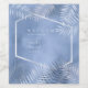 A trendy color palette in shades from steel gray to windsor blue; sparkling geometric frames and elegant design layouts, provide the basis for this exciting wedding suite. Whether you're planning a destination wedding or staying close to home, this delicate palm leaf design set makes an eye-catching choice. The coordinating wine label shown here provides a template to easily add a 'welcome' message, your names and wedding date. Search ID956 to see other pieces and color choices for this set.