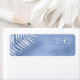 A trendy color palette in shades from steel gray to windsor blue; sparkling geometric frames and elegant design layouts, provide the basis for this exciting wedding suite. Whether you're planning a destination wedding or staying close to home, this delicate palm leaf design set makes an eye-catching choice. The wedding address label shown here, provides a template to easily add your own initials, names and address. Search ID956 to see other pieces and color choices for this set.