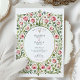 Step into an enchanted garden with this breathtakingly romantic wedding invitation. Inspired by the timeless beauty of the Arts and Crafts movement, this design features an intricate and lush watercolor border of delicate pink roses, buds, and gracefully weaving green vines. The dense, symmetrical pattern creates a magical tapestry reminiscent of a classic fairytale. A simple, elegant circular frame in a soft olive hue provides a perfect window for your personalized wedding details, which are displayed in a sophisticated mix of classic and script fonts. This invitation is an exquisite choice for a romantic garden, vintage, or fairytale-themed wedding, setting a tone of enduring elegance and beauty for your special day.
