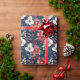 Lush Red and White Floral Pattern on Deep Navy Wrapping Paper