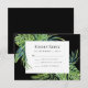 This design features watercolor tropical foliage, including lush, green monstera and palm leaves, surrounding a rectangular white frame on a black background. Personalize it with your choice of wording in black sans serif font. The reverse side is solid black.