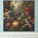 Transform your living space into a curated Victorian gallery. This museum-quality framed art print features a sprawling 19th-century naturalist illustration of colorful parrots and macaws nestled within a dense, multi-layered jungle canopy. The composition is a masterclass in maximalist beauty, showcasing deep jewel-toned feathers against a backdrop of shadowed palms, exotic blossoms, and ripening tropical fruit. It is an ideal statement piece for the eclectic home, bringing the immersive, atmospheric depth of a high-altitude rainforest to a sophisticated study, dining room, or botanical-themed bedroom.