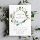 Lush White Flowers and Greenery Wreath Wedding Invitation