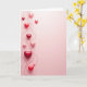 This card shows a row of glossy hearts stacked along the left side on a soft pink background. The hearts range in color from pale blush to deep ruby red, and their shiny surfaces catch the light like smooth candy. Between the hearts, thin wavy lines curl and weave like gentle ribbons, adding a sense of connection and movement. The right side is mostly open space with a light pink fade, which makes the whole layout feel calm and easy to look at. There’s no text on the front, so the hearts and the quiet space do all the talking. It feels meaningful to give because it keeps the focus on simple affection, whether you’re saying “I love you” or “I’m thinking of you” 🥰. The mix of soft background and glowing hearts makes the message feel tender and close ❤️. Hope it helps you share Valentine’s Day feelings with someone you care about.