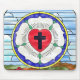 The Luther Rose's symbolism dates back to the 1520s. Luther explained that the red heart with the black cross represents the righteous living by faith in Christ the Crucified. The heart rests on a white rose, symbolizing joy, comfort, and peace found through faith. The choice of white reflects the color of heavenly spirits and angels. The white rose is set against a blue field, representing heaven, to signify that earthly joy and faith are just the beginning of eternal heavenly joy. Surrounding the blue field is a gold ring, symbolizing the endless and precious happiness of heaven.