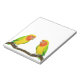Original fine art design of two lutino colored Lovebirds by artist Carolyn McFann of Two Purring Cats Studio printed on a quality notepad for parrot lovers.