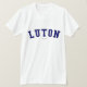 Check out this Luton t-shirt! Are you from Luton, United Kingdom? Do you have a friend or family member who loves Luton, United Kingdom? If so, this "Banner" t-shirt is exactly the gift that you're looking for! The design features "Luton" in arched navy lettering in the classic College font.