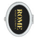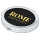 Lux compact mirror features Rome, Italy latitude and longitude map coordinates in gold fonts on black background.