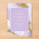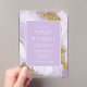 This custom design featuring an alcohol ink abstract in shades from soft lavender to lilac purple with glittering gold accents, is perfect for a romantic and elegant wedding theme. The transparent acrylic wedding invitation shown here provides a template to easily add your own names, wedding date and event details. Search ID990 to see other pieces in this coordinated wedding set.