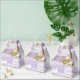 This custom design featuring an alcohol ink abstract in shades from soft lavender to lilac purple with glittering gold accents, is perfect for a romantic and elegant wedding theme. The matching favor box shown here provides a template to easily add your own initials, wedding date and thank you message. Search ID990 to see other pieces in this coordinated wedding set.