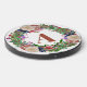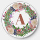 Elevate your charging experience with this luxurious wireless charger featuring a stunning botanical wreath design. The intricate illustration showcases lush peach roses, deep navy blooms, and vibrant pink florals intertwined with rich green foliage. Your chosen monogram letter appears in an elegant copper tone at the center, creating a sophisticated focal point. This charger transforms an everyday tech accessory into a beautiful desk accent, perfect for those who appreciate both functionality and refined botanical artwork. The detailed garden-inspired design makes it an ideal gift for special occasions or a lovely addition to your own workspace.