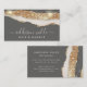 Make a bold and sophisticated statement with this stunning business card. The dramatic charcoal grey background is accented with a shimmering gold glitter wave pattern, creating a luxurious and eye-catching design. Your name and services are elegantly displayed in a crisp white font, ensuring a clean and professional look. Perfect for hair stylists, makeup artists, and other beauty professionals who want to showcase their style and expertise.