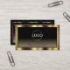 Make a lasting impression with this elegant and luxurious business card design featuring a shimmery dark gold frame and fine decor stripes with a modern black gradient background.