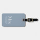 This elegant, minimalist honeymoon luggage tag says "Mrs." in a white, modern, high-fashion luxury font on dusty blue, and also has a spot for your last name and wedding date.
