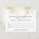 An array of cascading faux gold confetti dots create an eye-catching design pattern on this stylish designer gift certificate card. A delicate background of falling confetti dots in faux gold gives the illusion of shimmer. Great for makeup artists, hair stylists, beauty salons, boutiques and more. Please contact the designer if you need help with longer names or special typesetting. Art and design © 1201AM Design Studio | www.1201am.com