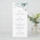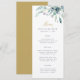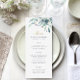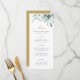 Custom printed wedding menu cards. Use the design tools to personalize the layout, background colors and text with your wedding menu details. This elegant design features a watercolor floral border of succulent greenery and blooms with gold and navy text.