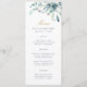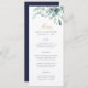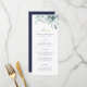 Custom printed wedding menu cards. Use the design tools to personalize the layout, background colors and text with your wedding menu details. This elegant design features a watercolor floral border of succulent greenery and blooms with gold and navy text.