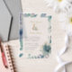 Affordable custom printed wedding invitations personalized with your event details. This elegant design features a faux gold foil ampersand with delicate blue and green watercolor foliage on a white background. Use the design tools to customize the text, edit the fonts and colors or add your own photos to create a classy and stylish wedding invitation.
