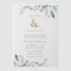 Affordable custom printed wedding invitations personalized with your event details. This elegant design features a faux gold foil ampersand with delicate blue and green watercolor foliage on a white background. Use the design tools to customize the text, edit the fonts and colors or add your own photos to create a classy and stylish wedding invitation.
