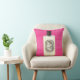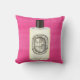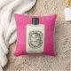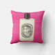 This pillow features an original painting by artist Anne Harwell of a classic French perfume bottle with black cap on a raspberry colored background. Design is on both front and back.