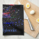 Perfect for the holiday season, this navy/black design features a glittering Christmas tree wrapped in swirls of red, green, aqua, magenta and pink gossamer and your name in a brilliant blue script font underneath that matches blue lights. Treat your kitchen towels to a Christmas upgrade with a custom trendy glittery navy and pink design perfect for the winter holiday season. This is ideal for cooks, chefs, bakers and as a personalized stocking stuffer for mom, grandma, nana, aunt, sister, or anyone one who loves to cook and bake for the holidays.
