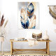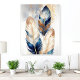 Transform your decor with this peel-and-stick acrylic tile showcasing a luxurious metallic feather design. The shimmering gold and deep blue accents create an elegant and modern statement piece, perfect for adding sophistication to living rooms, bedrooms, or offices. This art tile combines chic style with effortless application, elevating any space with its bold and artistic aesthetic.