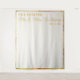 This wall backdrop is romantic and elegant at the same time. The design features a thin and minimalist uneven golden edge with golden typography for customizable Till Forever, Mr and Mrs Last Name and wedding date. Typography arranged at the top, so it is visible in photos. Customizable off White Background