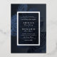 Luxe navy blue silver vintage botanical wedding foil invitation