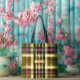 #luxe look gold accents on a customizable plaid tote bag