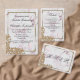 With this elegant and luxurious gold pearls and pink marble wedding thank you card, you can express your appreciation and thank your family and friends for their support and love on your wedding day. The design showcases a classically elegant pink marble pattern which is framed by a gold metallic border with pearl corners, and a beautiful, vintage-inspired gold floral lace insert at the bottom left corner, also embedded with tiny pearls.