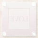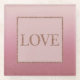 This is a Rose Gold Sparkle Glass Coaster. The LOVE design was created with generative art. The art features a luxe pink ombre and glitter sparkle effect background. There's a square with a pretty rose gold glitter trim in the center. Inside the square the word "LOVE" in faux rose gold glitter text. The coaster is a square glass coaster. You can replace the image with an image you own with the Personalize button.