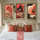 Luxe Poppy Plumes Portrait Bouffant Couture, Coral red, beige and black, digital art Decoupage tissue paper.