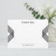 These thank you notes feature a bold stripe graphic with a nod to Art Deco style. The color palette is black and white and the cards can be personalized with names.