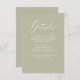 These simple and classic wedding guest information cards feature white text on a moss green background, and are made to coordinate perfectly with our "Luxe Floral Wedding" collection. You can use these cards to include information about your wedding reception, driving directions, accommodations, and anything else you need your guests to know.
