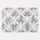 This is an elegant set of 3 sheets of luxe wrapping paper. The wrapping paper design was created with artificial intelligence art. The artwork features white marble swirls interwoven with faux silver glitter elements. The design is in the style of Yayoi Kusama and Piet Mondrian, combining minimalism and abstract geometric patterns with a touch of elegance. The wrapping paper design has visual appeal. The design is artistic and the white, silver and glitter colors are impressive. There are three versions of the design on the wrapping paper. The wrapping paper has grid guidelines to help fold the paper. The wrapping paper is printed in the USA.