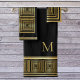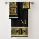 Luxurious and elegant black and gold bath towel set with a customizable monogram / initial.