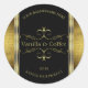 Make a lasting impression with this luxury and modern product label design featuring shimmering gold ornaments on a black background with golden glitter borders.