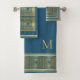 Luxurious and elegant blue gold bath towel set with a customizable monogram / initial.